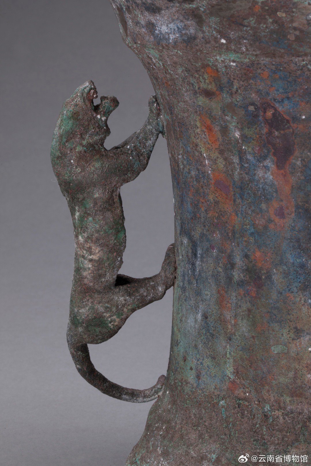 Close-up of the tiger-shaped ear on the bronze receptacle [Photo/Official Weibo account of the Yunnan Provincial Museum]