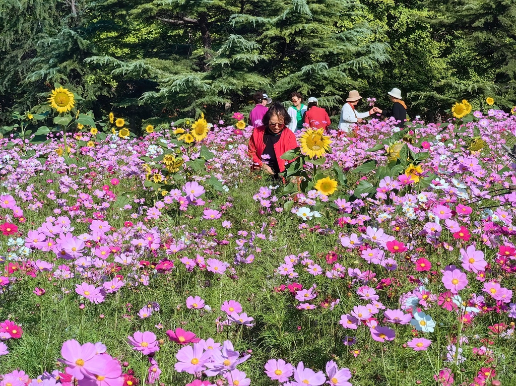 Colorful flowers draw visitors to Beijing Olympic Forest Park. [Photo/IC]