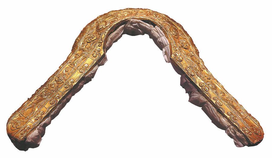 A gold decorative item for a wooden saddle. JIANG DONG/CHINA