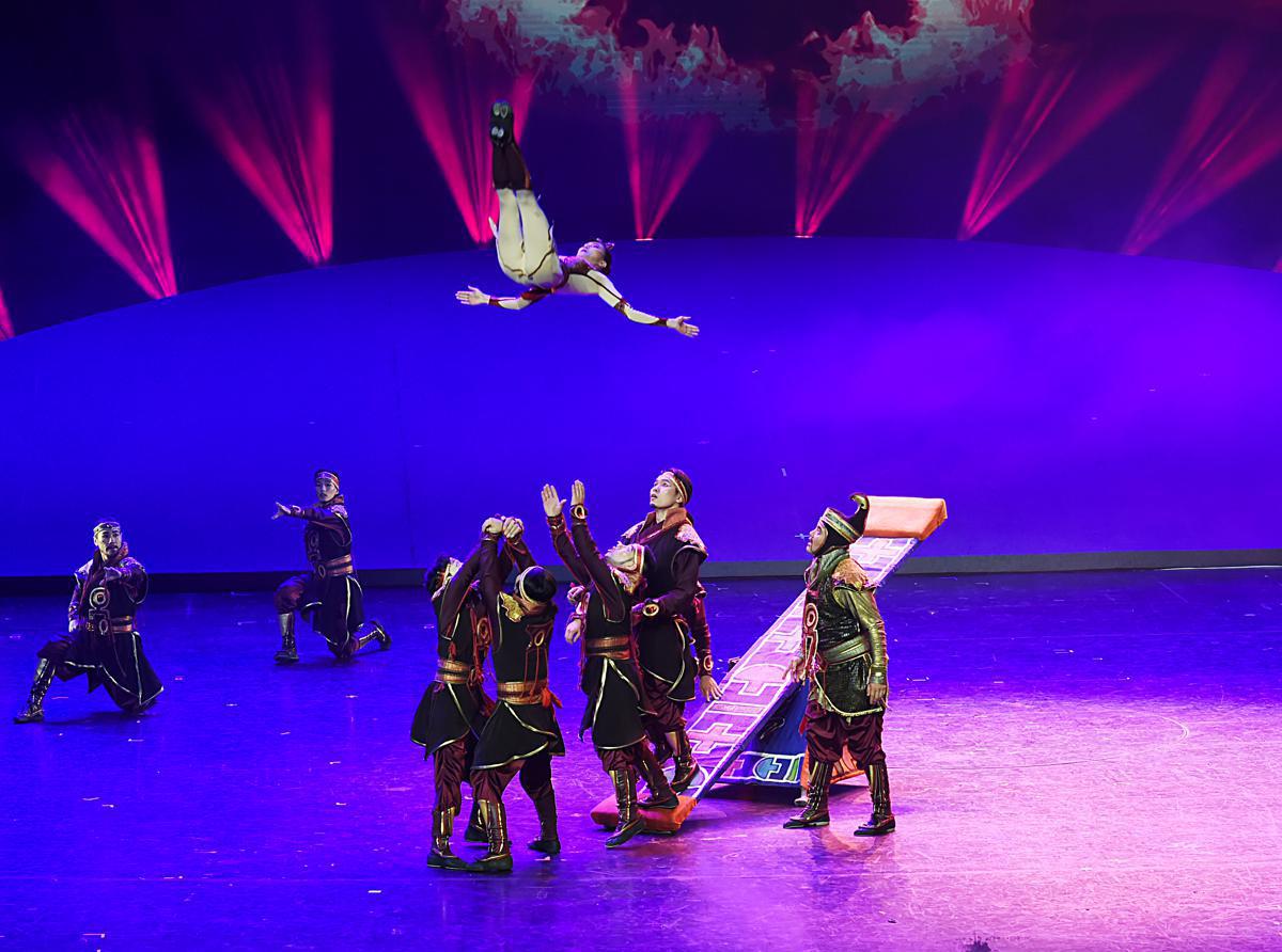 An acrobatics performance is showcased during the opening ceremony of the 19th China Wuqiao International Circus Festival in Shijiazhuang, capital city of North China's Hebei province on Friday. [Photo by Shi Shengquan with Hebei Daily/For chinadaily.com.cn]