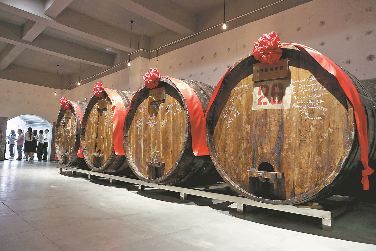 It has registered 53 trademarks, developed nine fruit wine companies, four cork stopper companies, and 80 stores and e-commerce outlets. The comprehensive output value exceeds 1 billion yuan ($137 million), benefiting more than 2,100 households. More than 3,600 people are employed in grape cultivation, wine production and related work.