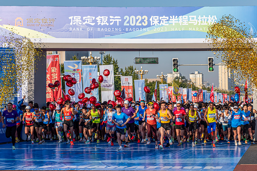 The 2023 Baoding Half Marathon held in Baoding, North China's Hebei province attracted more than 9,000 runners from home and abroad to take part in the competition along a scenic and recreational running track on Sunday.