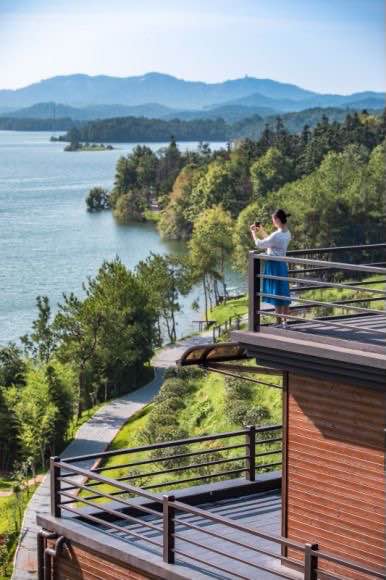 A visitor takes a photo of the beautiful Mulan Lake. [Photo provided to chinaservicesinfo.com]