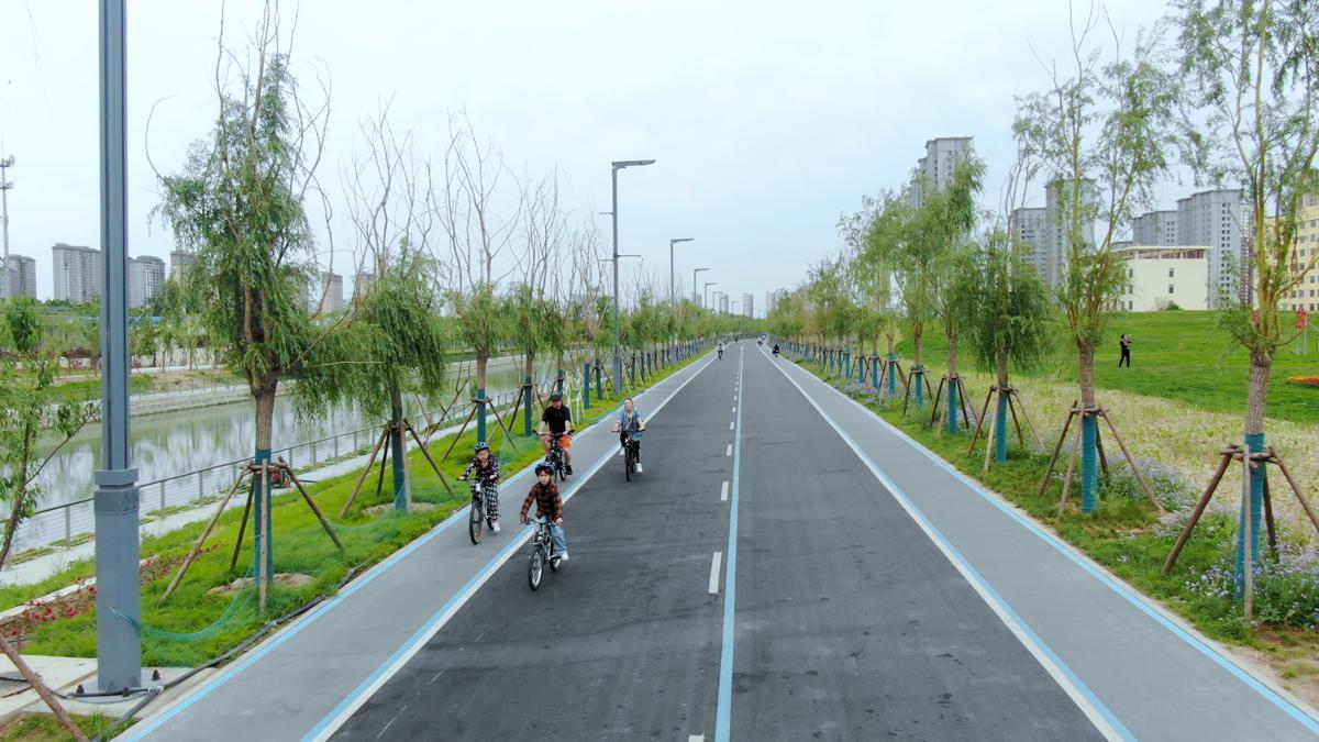 Gibson and his family go cycling along a marathon track in Baoding, Hebei province. [Photo by Li Ming/For chinadaily.com.cn]