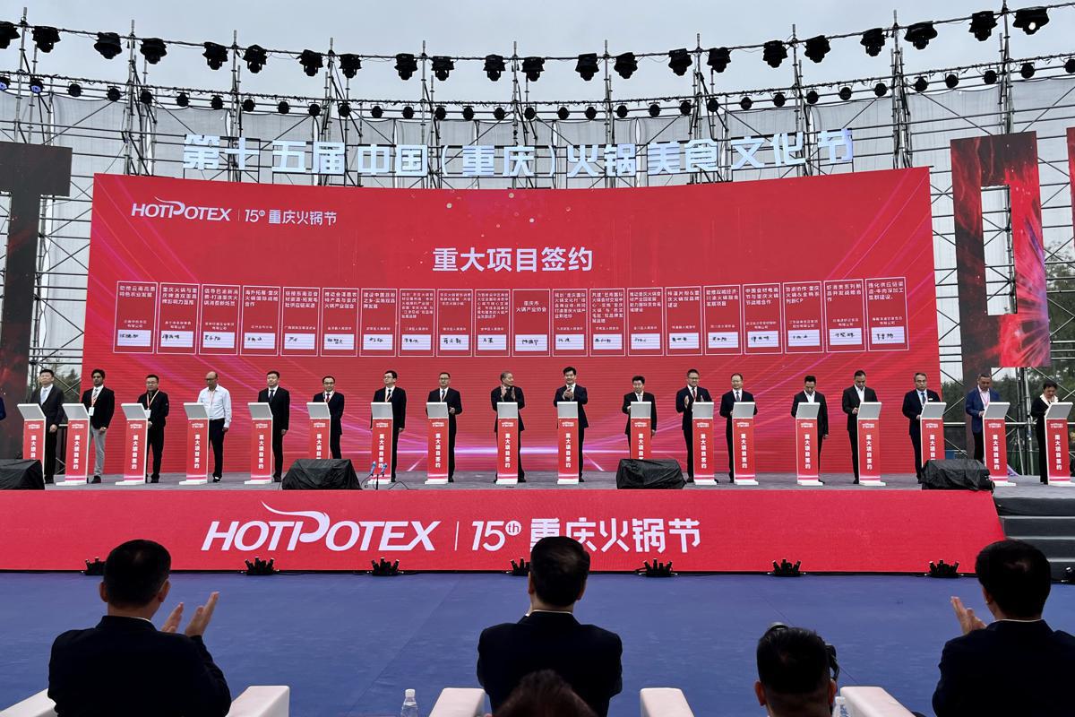 Ten deals worth more than 5.3 billion yuan ($ 724 million) related to hotpot industry chain are signed at the opening ceremony of the 15th China (Chongqing) Hotpot and Food Culture Festival and the 8th China (Chongqing) International Hotpot Industry Expo on Friday in Chongqing. [Photo by Deng Rui/chinadaily.com.cn]