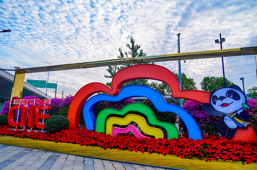This photo taken on Oct 29, 2023, shows the street view outside the 6th China International Import Expo venue in Shanghai.[Photo/VCG]