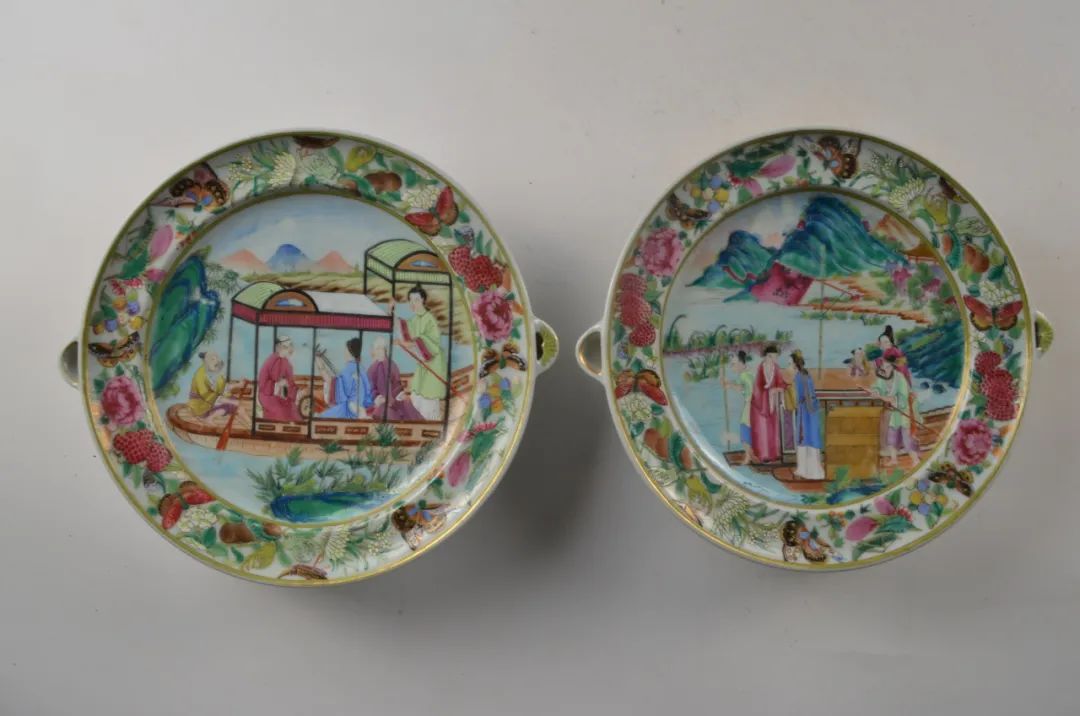 Canton ceramic plates with patterns of figures on boats, Qing Dynasty [Photo/Official WeChat account of the China Maritime Museum]