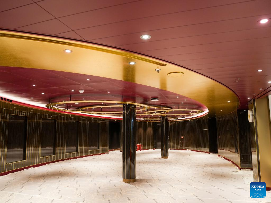 This photo taken on Nov 4, 2023 shows the interior view of cruise ship "Adora Magic City" in Shanghai, east China. After five years of design, building and a subsequent trial voyage, China's first domestically-built large cruise ship, the "Adora Magic City," was delivered in Shanghai on Saturday, with its maiden voyage scheduled for Jan 1, 2024. [Photo/Xinhua]