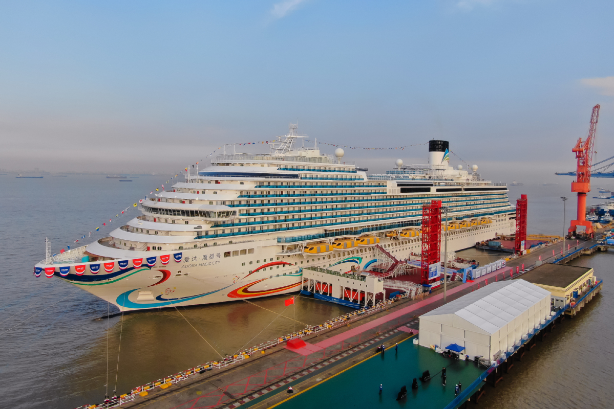 China's first domestically made large cruise ship Adora Magic City is delivered in Shanghai on Nov 4, 2023. [Photo provided to chinadaily.com.cn]