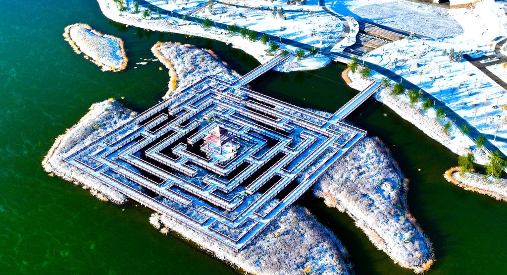 On Nov 5, a chilly spell brought snow to Zhangye city, Gansu province, transforming the Central Cultural Park into a winter wonderland. As the snowflakes settled, the park looked shimmering coated in ice.