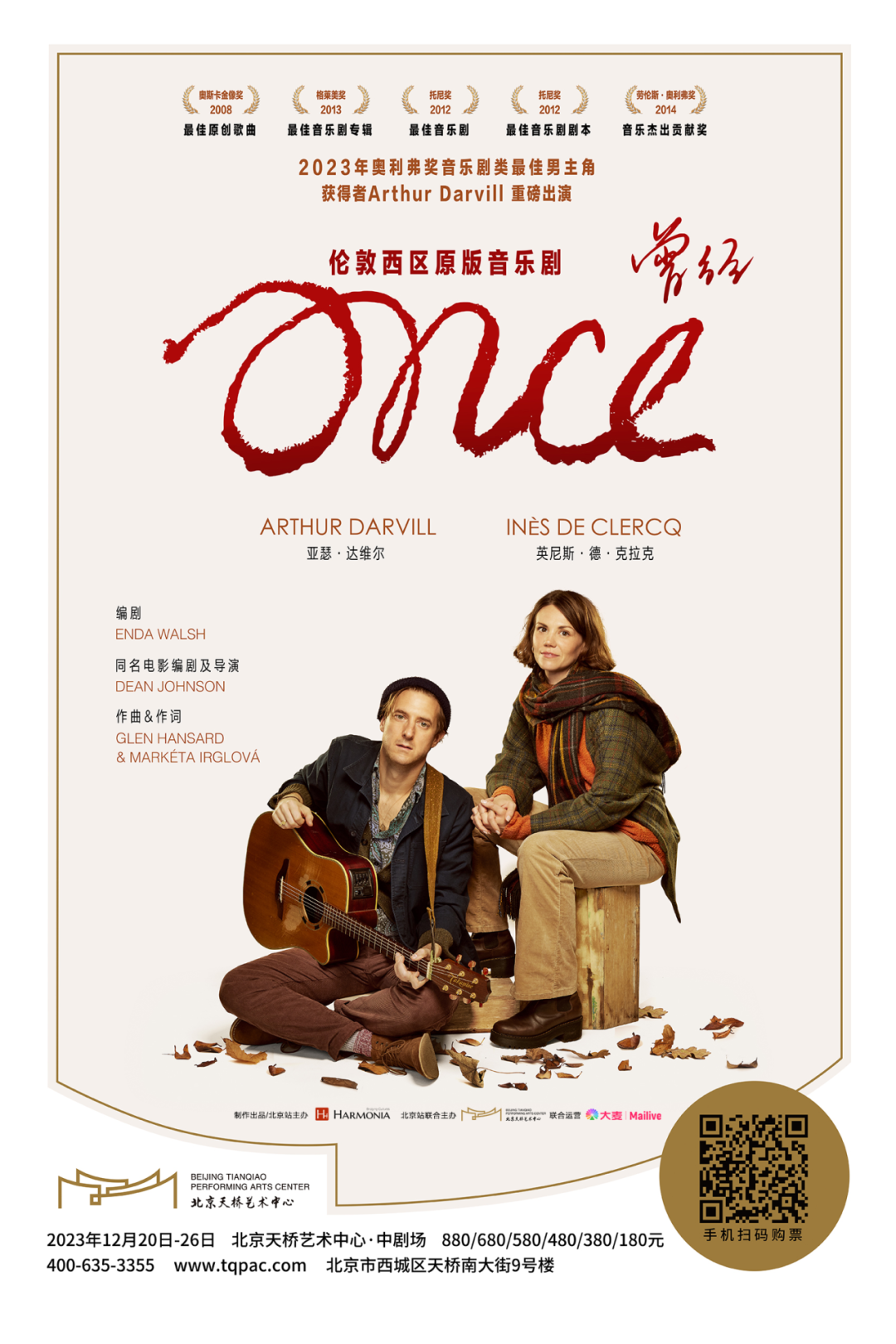 Get ready for a musical journey! London's West End sensation Once is coming to Beijing from Dec 20-26 at the Beijing Tianqiao Performing Arts Center. Tickets are on sale starting Nov 8. Don't miss this incredible performance!