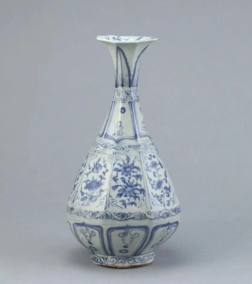 Blue-and-white pear-shaped vase with a flared lip adorned with floral patterns, Jingdezhen ware, Yuan Dynasty (1271-1368), donated by Y. T. Chen Foundation [Photo/Official WeChat account of the Arthur M. Sackler Museum of Art and Archaeology at Peking University]
