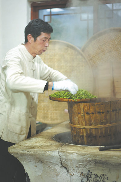 He says that, when he was growing up near Guzhu Hill, the original site of the imperial tea factory, families used to pick tea growing wild on the hills, roast it by hand and drink it for pleasure.