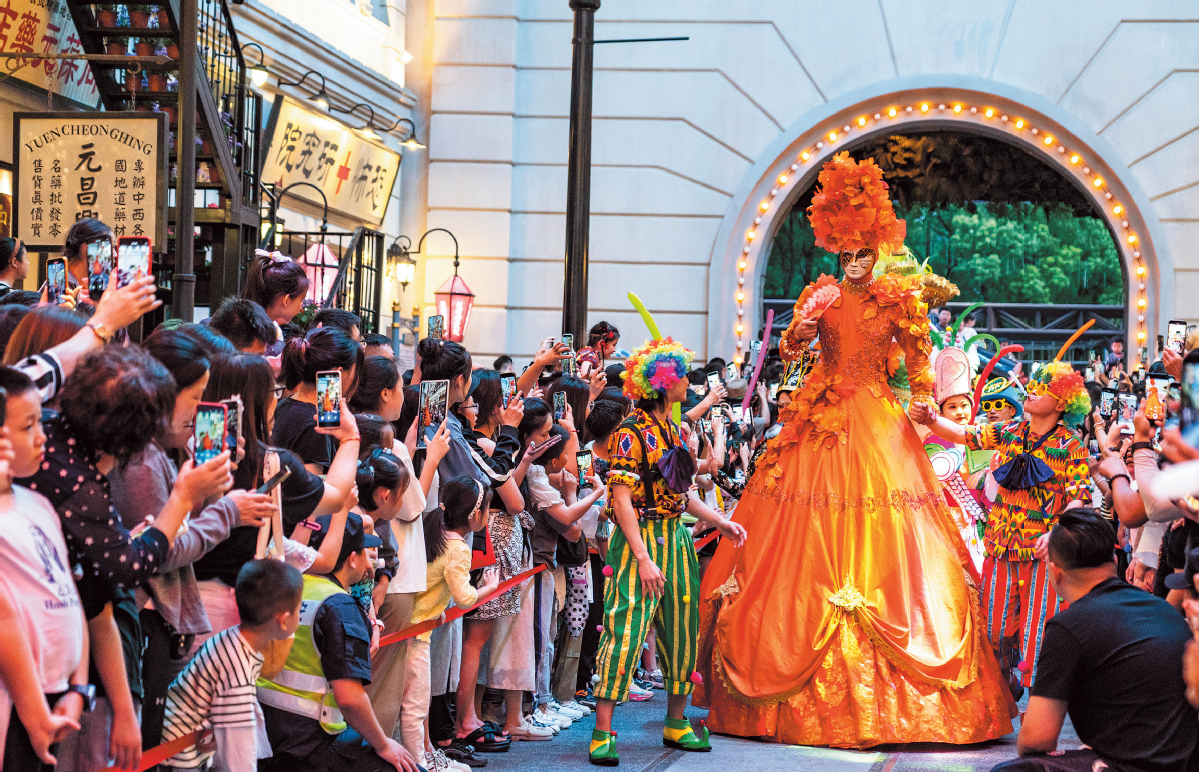 Tourists watch a parade staged at a theme park in Shanghai. FAN JIANLEI/FOR CHINA DAILY