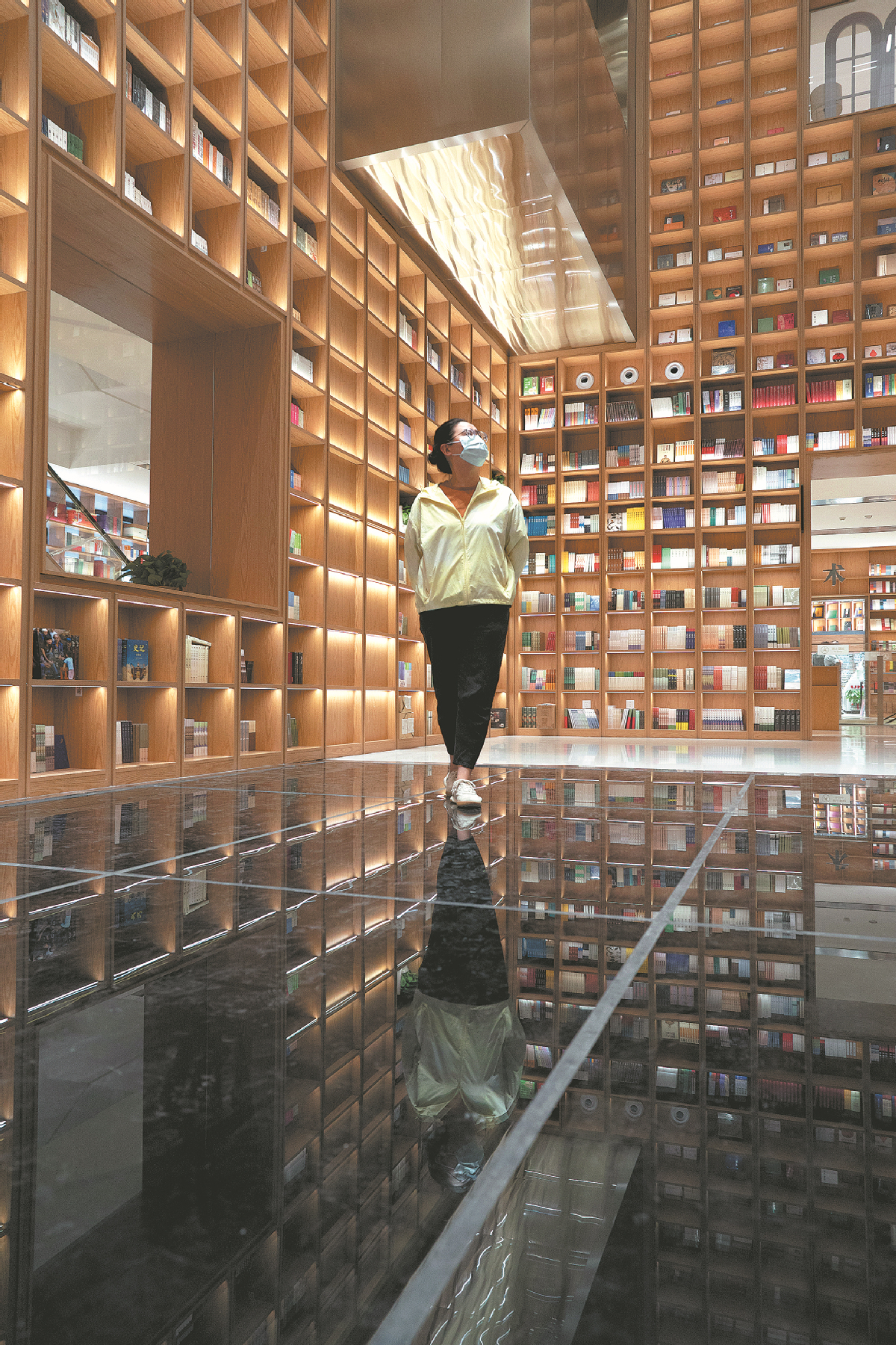 A woman walks in Shanghai Book City. GAO ERQIANG/CHINA DAILY