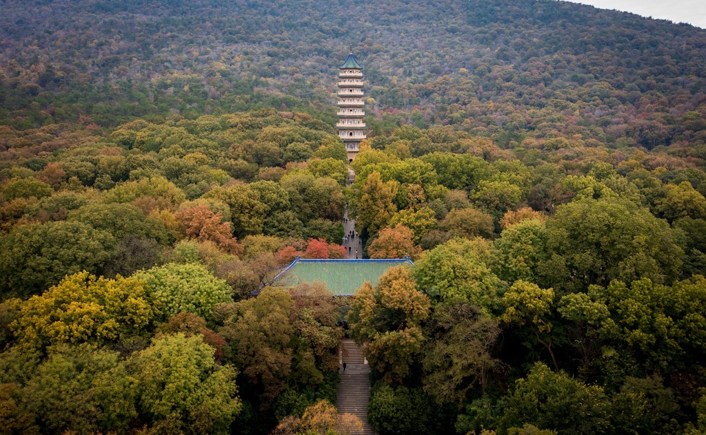 Check out an amazing aerial view of the Linggu Temple in Nanjing, Jiangsu province! The autumn hues of Linggu Temple paint a picture-perfect scene.