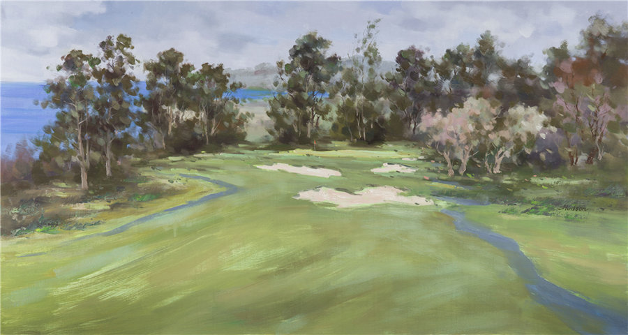 Landscapes of golf courses have become a recurring motif of Zhang Shaoxia's creation. [Photo provided to China Daily]