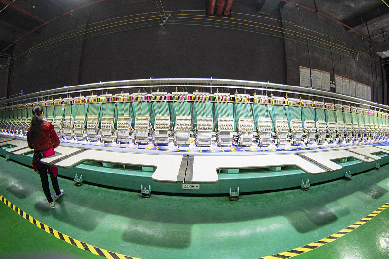 People can see staff members working hard to meet the market demands in embroidery and clothing workshops in Qiandongnan Miao and Dong autonomous prefecture, Southwest China's Guizhou province.