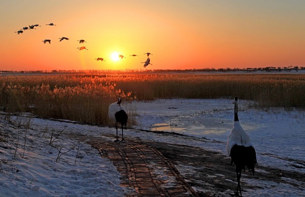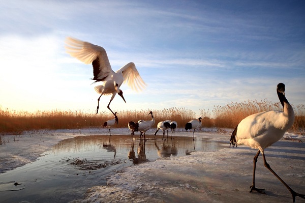 As one of the Wetlands of International Importance (Ramsar sites), Xianghai wetland in Jilin province hosts 6 of the world's 15 crane species.