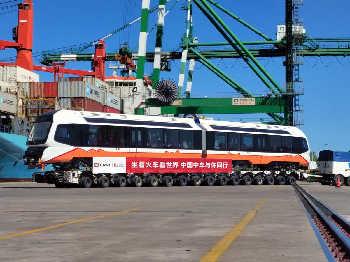 A new-energy light rail train, produced by a Chinese company, was delivered to Argentina early on Tuesday at local time. This marks the debut of these Chinese-made trains in the South American country.