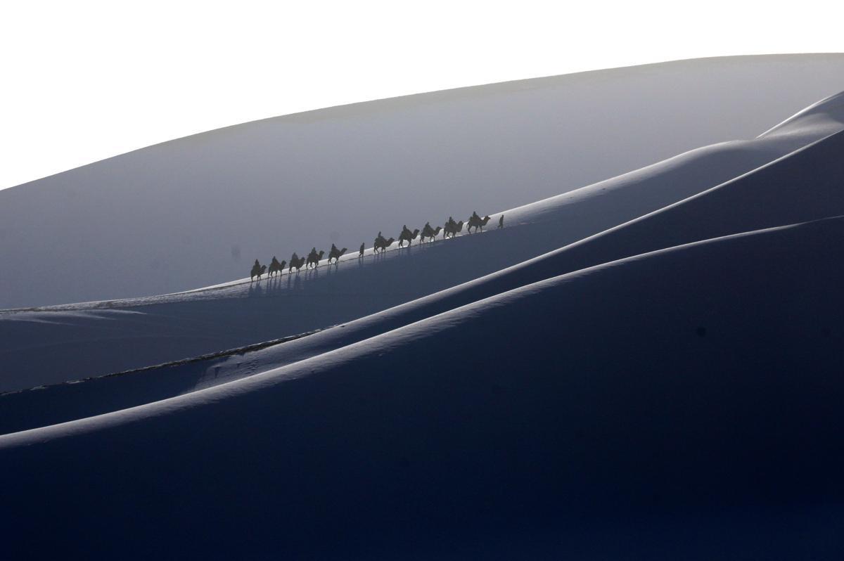 Snowy scenery in Yueyaquan, a scenic spot on Mingsha Mountain in Dunhuang, Gansu province on Wednesday. [Photo by Xi Gang/For chinadaily.com.cn]