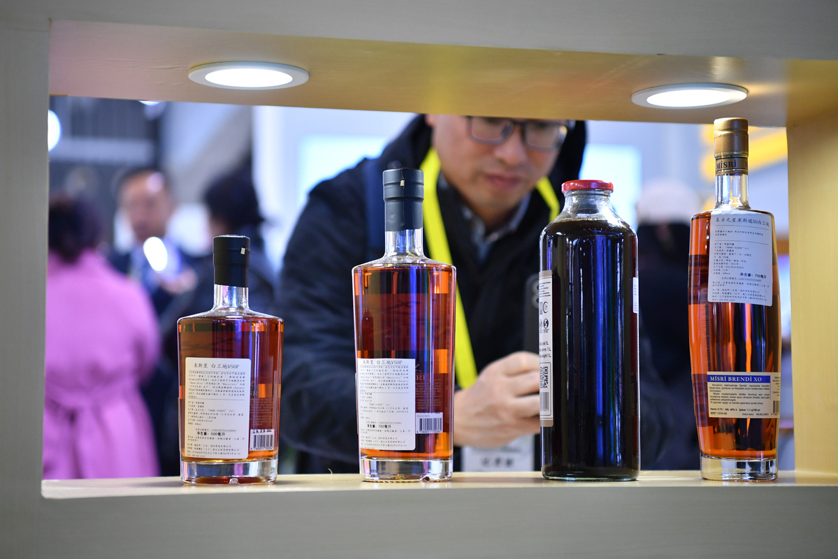 A visitor tastes beverage product at the booth of Azerbaijan during the Seventh Silk Road International Exposition in Xi'an, capital of Northwest China's Shaanxi province, on Nov 16, 2023. [Photo/Xinhua]