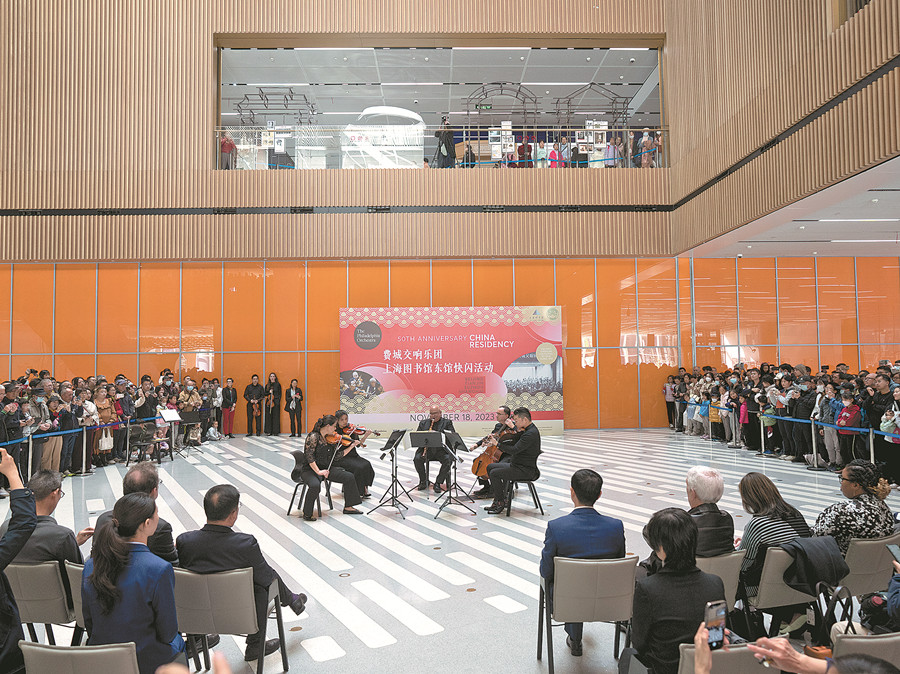 In Shanghai, the musicians from Philadelphia performed at Shanghai Tech University on Friday night. On Saturday, they performed with the students of China Welfare Institute Children's Palace, and then played at a chamber concert at the Shanghai Library East, where the members performed Mozart's Clarinet Quintet K. 581, two movements from Dohnanyi's Serenade in C major for String Trio, as well as Chinese composer Chen Yaoxing's Galloping Horse.