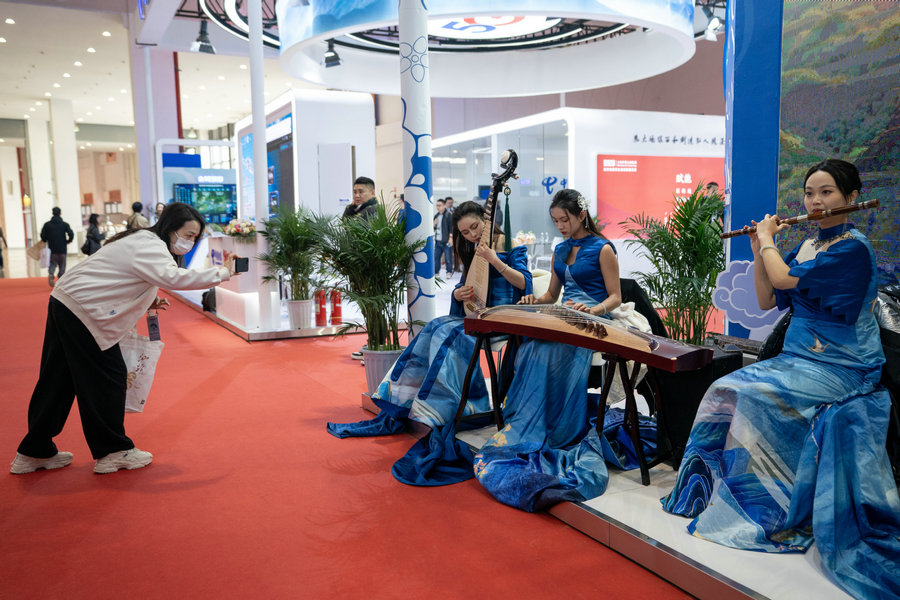 Performers play traditional Chinese instruments during the China International Travel Mart 2023 in Kunming, Southwest China's Yunnan province, Nov 17, 2023. [Photo/Xinhua]