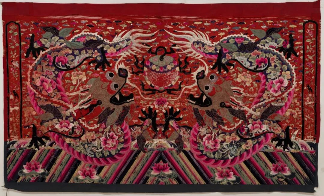 An embroidery depicting two dragons chasing a flaming pearl, Qing Dynasty [Photo/Official WeChat account of the China Millennium Monument]