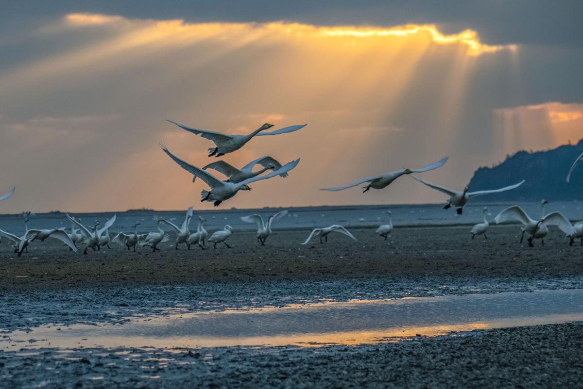 Whooper swans were seen in their winter habitat at the Rongcheng Swan National Nature Reserve in Weihai, Shandong province, on Saturday. [Photos by Li Xinjun/For chinadaily.com.cn]