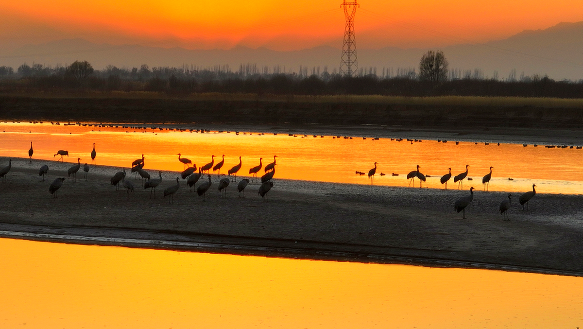Grey cranes gather at Tianhewan National Wetland Park in Pingluo county, Shizuishan city, Ningxia Hui autonomous region. [Photo by Yue Changhong/For chinadaily.com.cn]