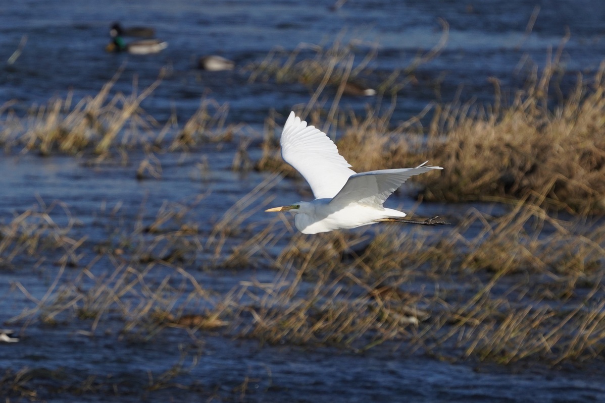 A great egret flies over the Hutuo River wetland in Pingshan county, Shijiazhuang, Hebei province. [Photo by Yan Zhenping/For chinadaily.com.cn]