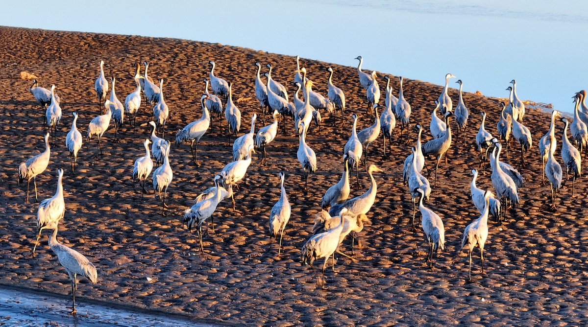 Grey cranes gather at Tianhewan National Wetland Park in Pingluo county, Shizuishan city, Ningxia Hui autonomous region. [Photo by Yue Changhong/For chinadaily.com.cn]