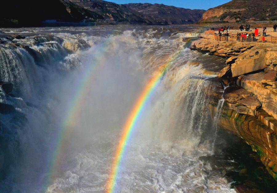 A rainbow arches over the Hukou Waterfall on the Yellow River in Jixian county of Shanxi province. [Photo by Lyu Guiming/For chinadaily.com.cn]