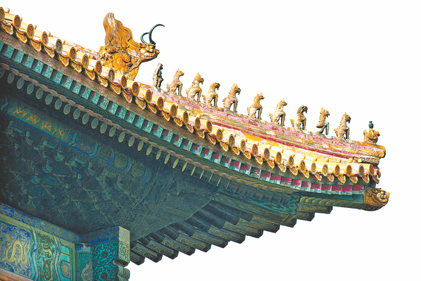 The roof is, notably, decorated with figurines of an immortal and 10 monsters at the end of its diagonal ridges, the one and only example in ancient Chinese architecture, indicating it was the highest-level palatial construction in the royal palace.