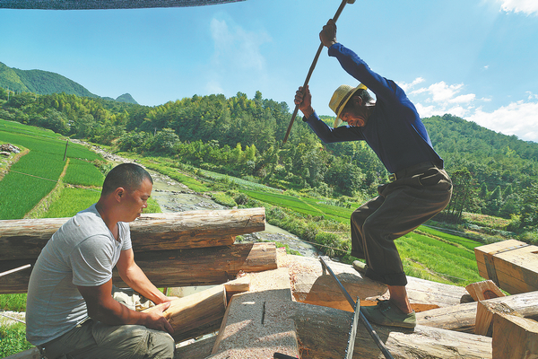 Zeng Jiakuai, a provincial-level inheritor of "beam-weaving "techniques, leads one of the teams. It's a traditional method that involves interweaving and fastening multiple layers of wooden beams to create a single, strong and stable structure.