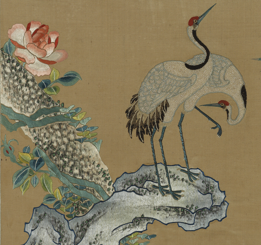 Detail of embroidery of a pine tree and a crane, Qing Dynasty (1644-1911) [Photo/Official WeChat account of the Suzhou Museum]