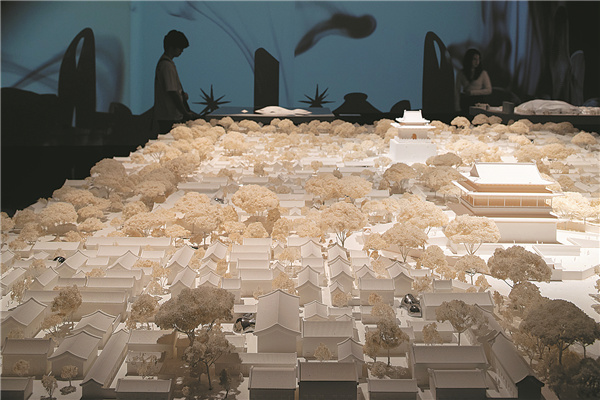A seabird poised to take flight toward the distant horizon has been placed at the center of the exhibition space. This installation piece called Freedom belongs to the first chapter of the exhibition, which is titled Dialogue. It features seven urban public projects, including Shenzhen Bay Culture Park, Harbin Opera House, the FENIX Museum of Migration in Rotterdam, the Netherlands, Quzhou Sports Park, Yiwu Grand Theatre, and the Lucas Museum of Narrative Art in Los Angeles.