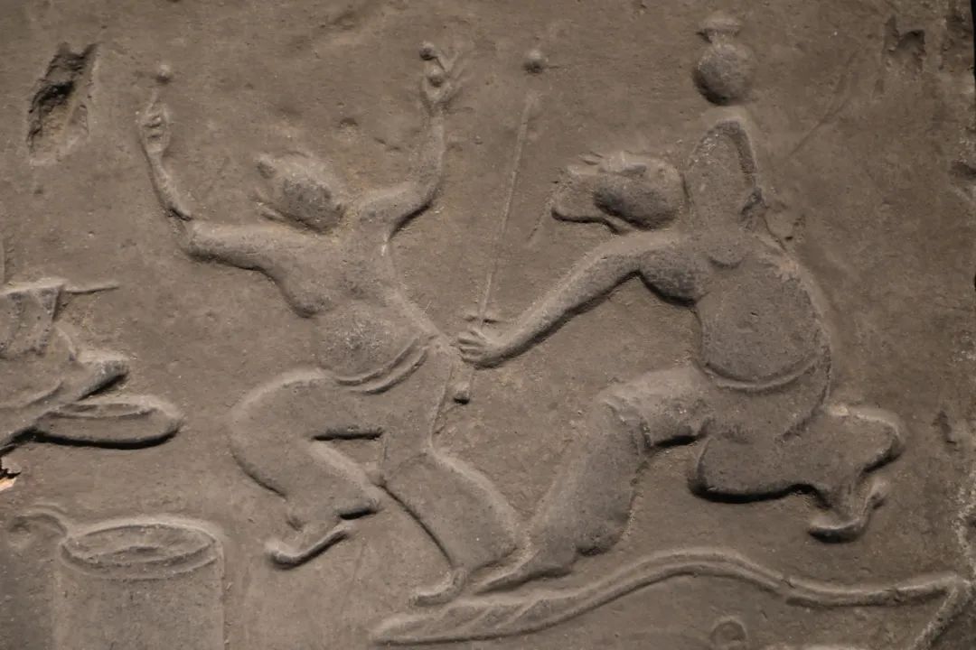 Detail of the brick relief, featuring two jugglers [Photo/Official WeChat account of the Sichuan Museum]