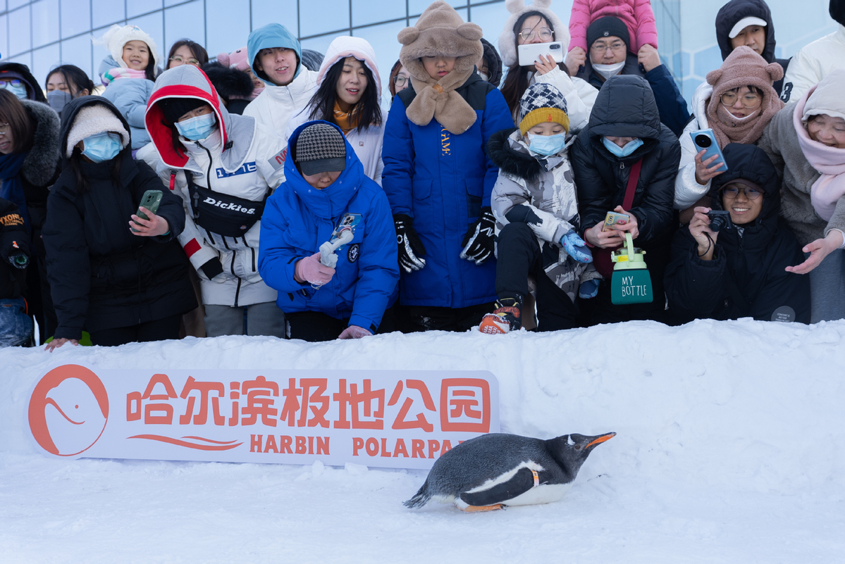 The penguins of the Harbin Polar Park embarked on an enchanting snow and ice parade on December 3, 2023. As the weekend unfolded, the penguins emerged outdoors, taking center stage and drawing a captivated audience of visitors keen to witness this unique winter spectacle. This time of year is peak winter tourism season in Harbin, a city renowned for its winter attractions, and the penguins' snowy parade provided a heartwarming and entertaining highlight to the city's winter scene.[Photo/Xinhua]