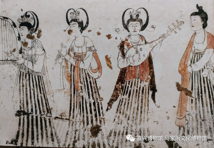 A tomb mural depicting female musicians, from the tomb of Concubine Yande (609-71) [Photo/Official WeChat account of the Jiaxing Museum]