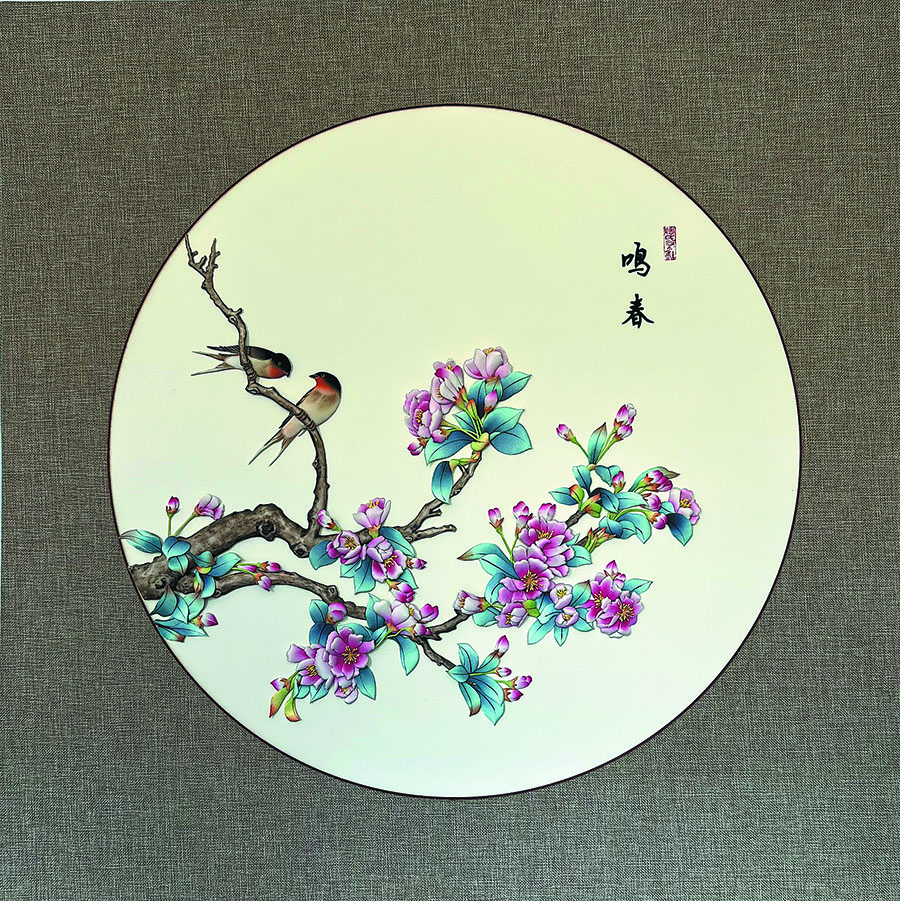 A buhu paintings for wall hanging, featuring sparrows resting on crabapple branches. [Photo provided to China Daily]