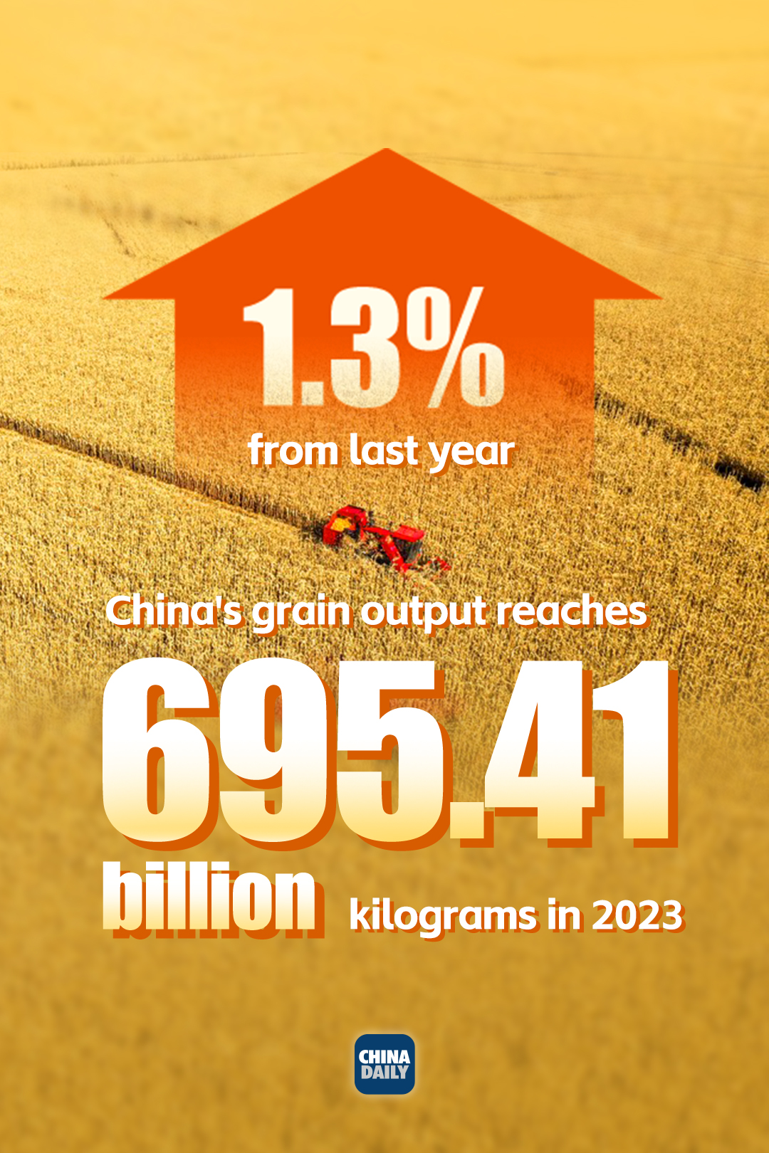 China produced 695.41 million metric tons of grain this year, a year-on-year increase of 8.88 million tons, or 1.3 percent, the National Bureau of Statistics said on Monday.
