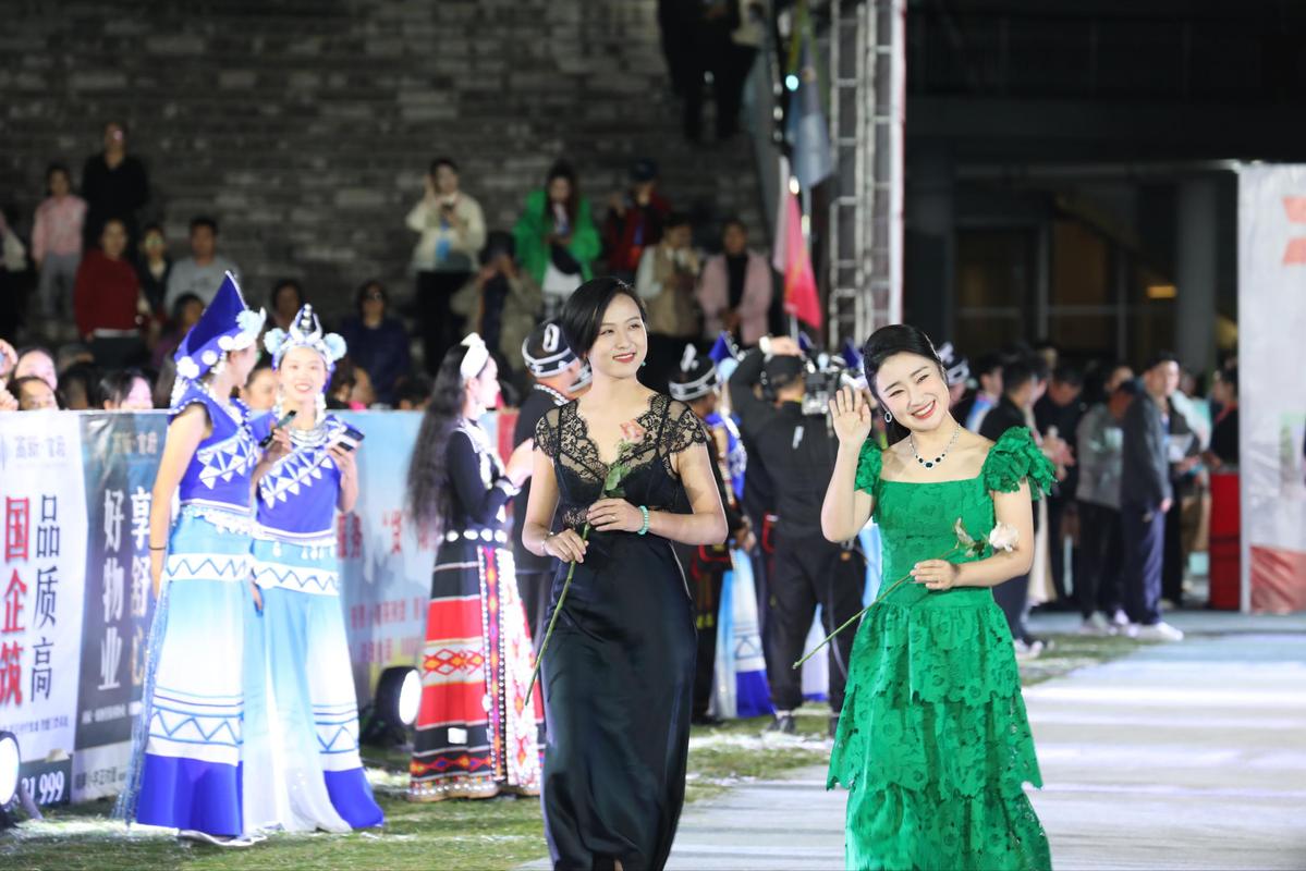 Two women bring Yunnan roses into the venue at the 10th Asia Microfilm Art Festival in Lincang city, Yunnan province. [Photo provided to chinaservicesinfo.com]