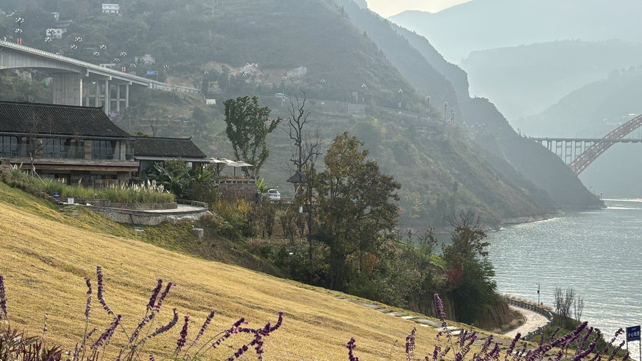 Ningjiangdu Park is located at the intersection of the Yangtze River, China's longest waterway, and Daning River. The Ningjiangdu was once an ancient ferry crossing and, in November 2020, Wushan county implemented the Ningjiangdu ecological restoration project, which transformed the once barren slope into six scenes: a village entrance, rural residence, boat crossing, river viewing, reading and overnight lodging. Efforts were made to restore the original mountain range, repair the mountain surface, create a healthy forest vegetation system and improve the ecological governance of the subsidence zone. The ecological restoration area of Ningjiangdu has reached 26 hectares.
