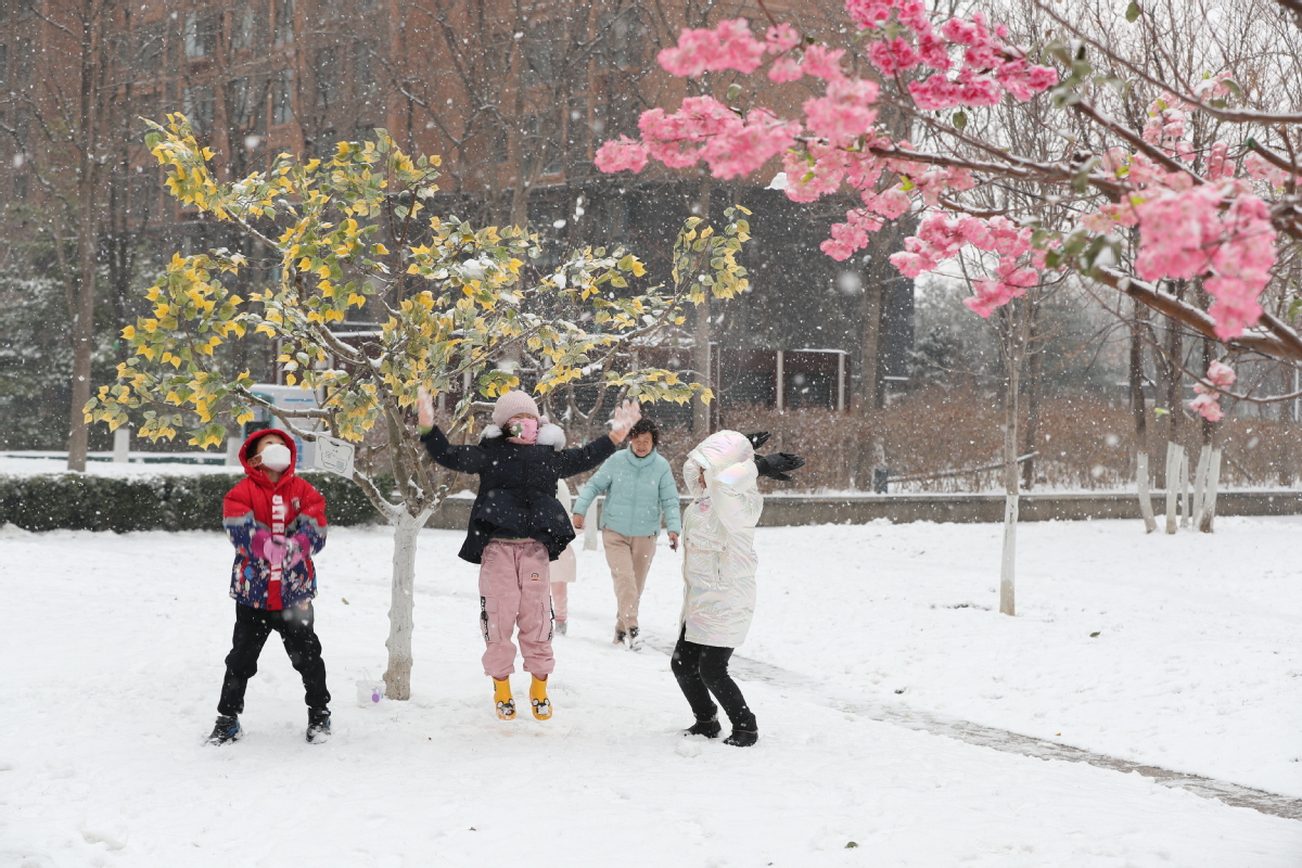 Residents in Beijing enjoy the first snow of the winter on Tuesday. [Photo by Wang Jing/chinadaily.com.cn]