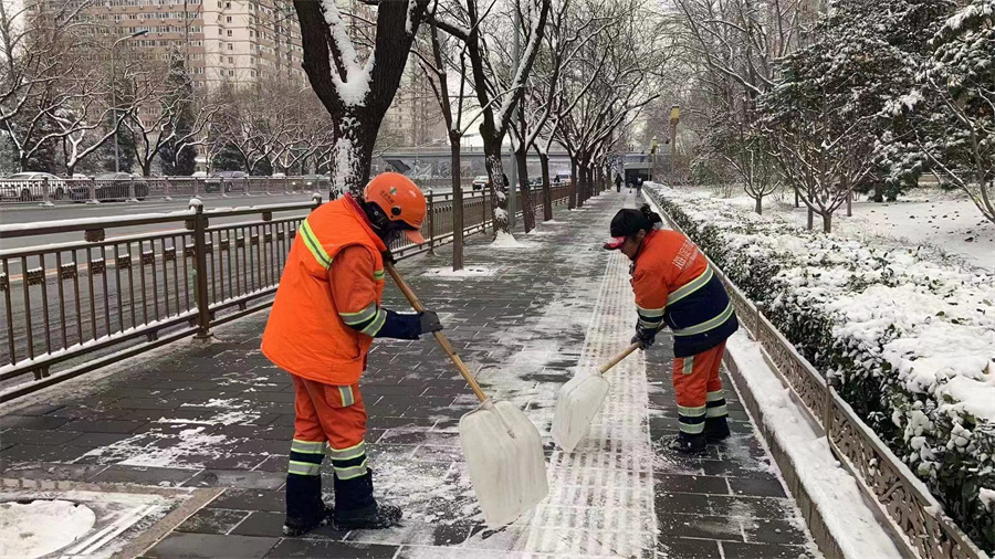 Crews clear snow on Monday. [Photo provided to chinadaily.com.cn]