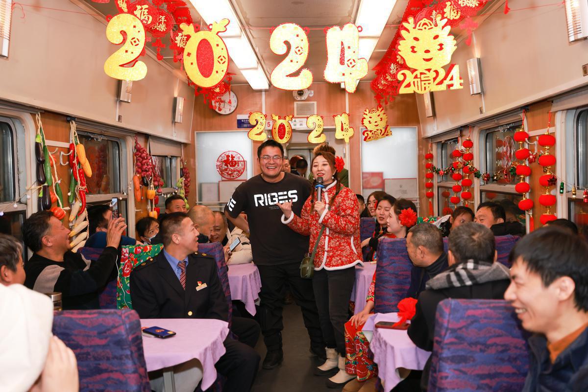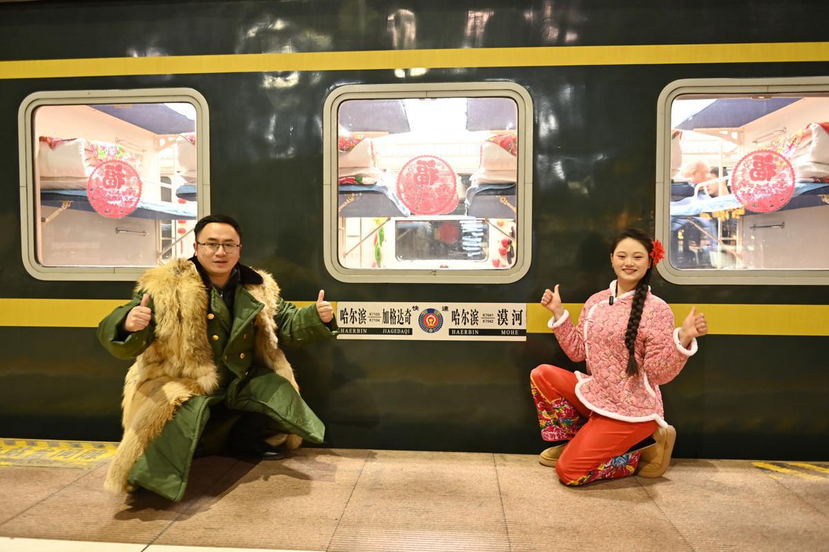 Passengers were excited to experience Northeast folk culture when they boarded the train at the Harbin Railway Station in Heilongjiang province on Friday evening.
