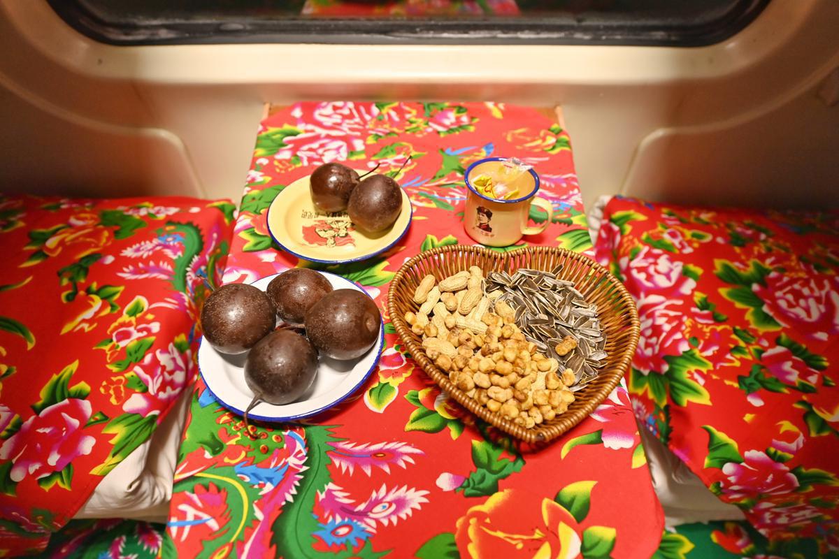 Some sleeper carriages and the dining carriage have been decorated with Northeast folk elements, such as window paper-cuttings and colorful bedsheets.
