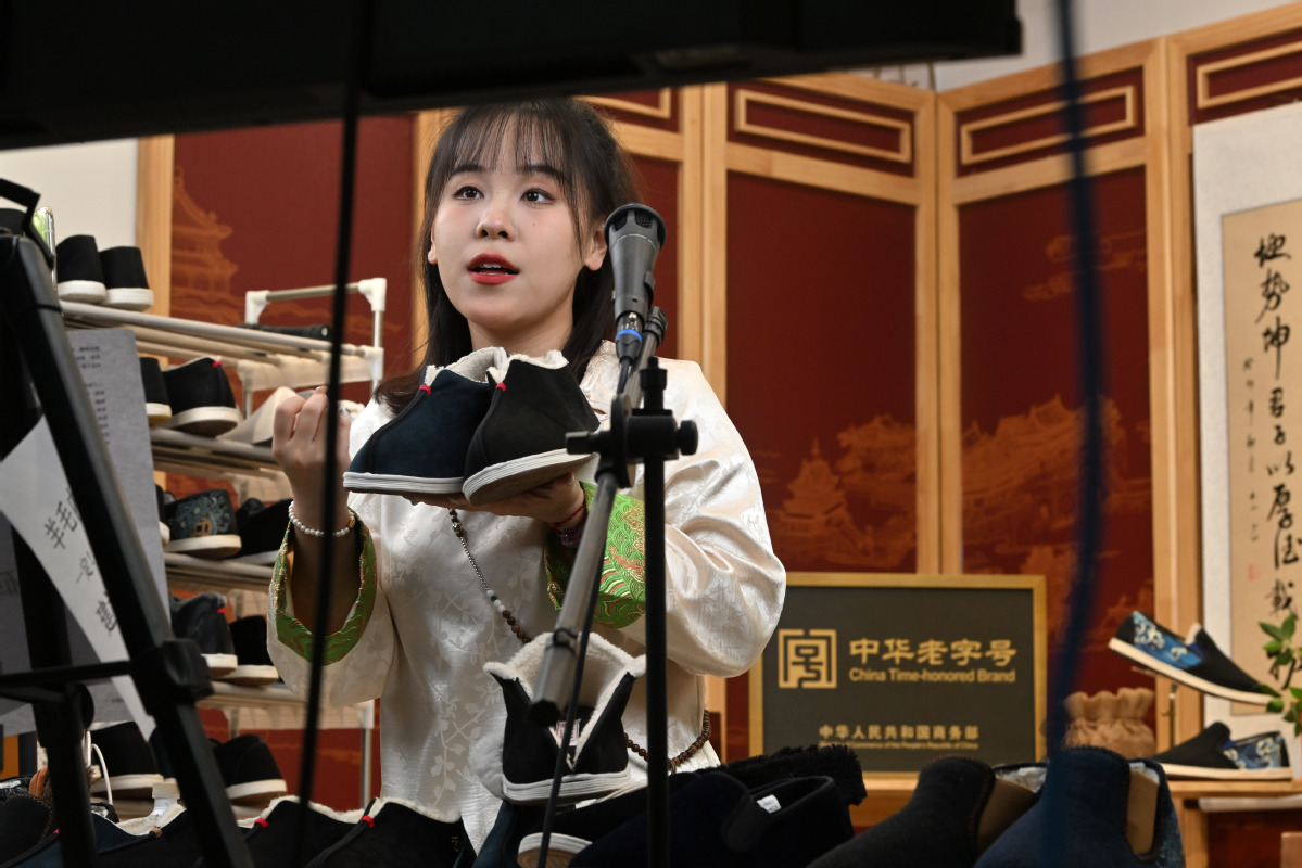 A staff member sells products of Laomeihua via livestreaming in Tianjin on Dec 8, 2023. [Photo/Xinhua]